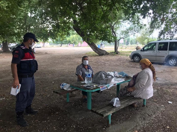 Çok sayıda jandarma personelinin katıldığı denetimlerde tören sahipleri ve törene katılan vatandaşlar maske, mesafe ve hijyen konularında uyarıldı. Jandarma ekipleri, mesire alanlarında yaptıkları çalışmalarda da piknik yapan vatandaşlara sık sık mesafe ve hijyen kuralını hatırlatarak maskelerini takmalarını istedi.