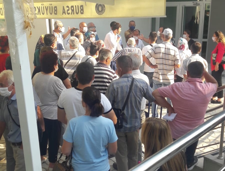 Bursa’da koronavirüs testi yaptırmak için uzun kuyruklar oluşturan vatandaşların, sosyal mesafe kuralına ise uymadıkları görülüyor.