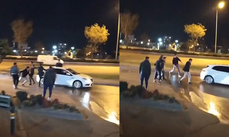Bursa-Ankara yolu Gökdere mevkiinde trafikte makas atarak gittiğini iddia ettikleri otomobilin önüne kesen kişiler, araç içerisinde bulunan sürücüye hakaretler savurdu. Sinirini alamayan kişilerin otomobili tekmeledikleri anlar ise bir vatandaşın cep telefonu kamerasına yansıdı.