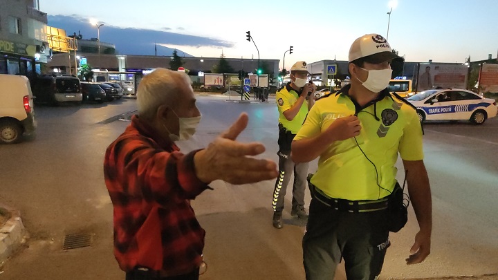 Yaşlı adam polislere, “Yarın Kaymakama gideceğim, beni ceza ile mi korkutacaksınız” diye tepki gösterdi. Cezanın ardından “takmıyorum” diye bağıran Abdurahman K. maskesini çıkararak yoluna devam etti.