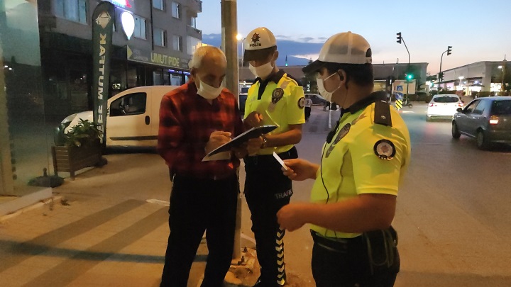 İnegöl Emniyet Müdürlüğü ekipleri Sinanbey Mahallesi Ahmet Akyollu Caddesi üzerinde maske denetimlerini sürdürüyor. Denetimler sırasında maske kullanmadığı tespit edilen Abdurrahman K. ile ekipler arasında ilginç diyalog yaşandı. Maske kullandığını ve evinden az önce çıktığını söyleyen Abdurrahman K. polis ekiplerine zor anlar yaşattı. Kimliğinin yanında olmadığını söyleyen adam, karakola götürüleceğini öğrenince, cebinden kimliğini çıkardı. Polis ekipleri, Abdurrahman K.’ye 900 TL cezai işlem uyguladı.