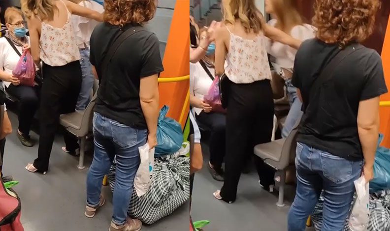 Taraflardan birinin metrodan inmesiyle tartışma son bulurken, o anlar metrodaki başka bir yolcunun cep telefonu kamerasına yansıdı.