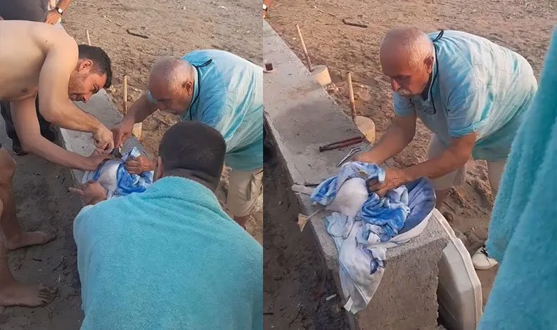 Bursa’nın Mudanya ilçesinde sahilde gezen vatandaşlar misinaya takılmış bir martı olduğunu gördü. Martıyı tutan vatandaşlar, makas yardımı ile misinayı keserek kurtardı. Martı daha sonra uçarak özgürlüğüne kavuştu.