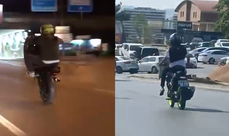 Edinilen bilgiye göre, merkez Nilüfer ilçesi İzmir Yolu Caddesi üzerinde motosiklet sürücüsü ön kaldırarak seyretmeye başladı. Bir süre bu şekilde giden motosiklet sürücüsü diğer sürücülerin yüreklerini ağza getirirken bir sürücü o anları kayda aldı.