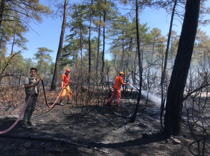 Ekipler, soğutma çalışmalarını sürdürürken yangında yaklaşık 5 dönüm alanın zarar gördüğü bildirildi.