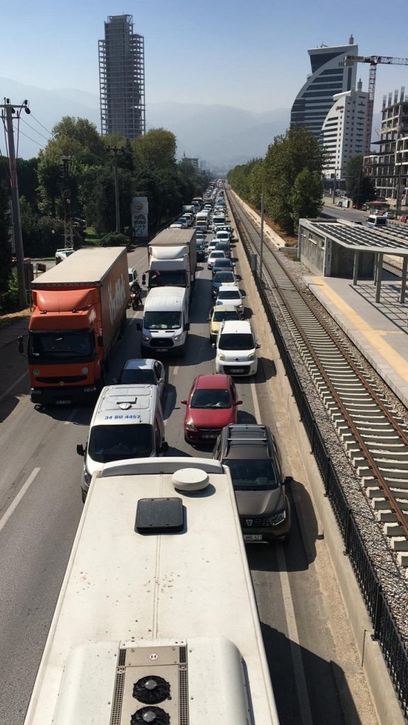 Bursa’da bir halk otobüsü, İstanbul Caddesi üzerinde bir minibüse arkadan çarptı, trafik adeta kilitlendi.