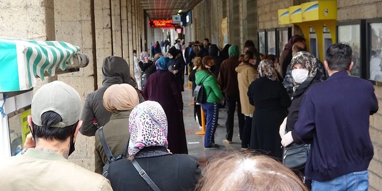 Heykel PTT önündeki kuyrukta sosyal mesafe kuralına uymayan vatandaşlar polis ekipleri tarafından sık sık ikaz edildi. Saatlerce kuyrukta bekleyen vatandaşların kimisi ümitlerini yitirip evlerine dönerken, mecbur olanlar ise beklemek zorunda kaldı. Vatandaşlar, korona virüsü salgını sebebiyle birçok postahane şubesinin kapatılmasına tepki göstererek, bu sıkıntıya bir çare bulunmasını istedi.
