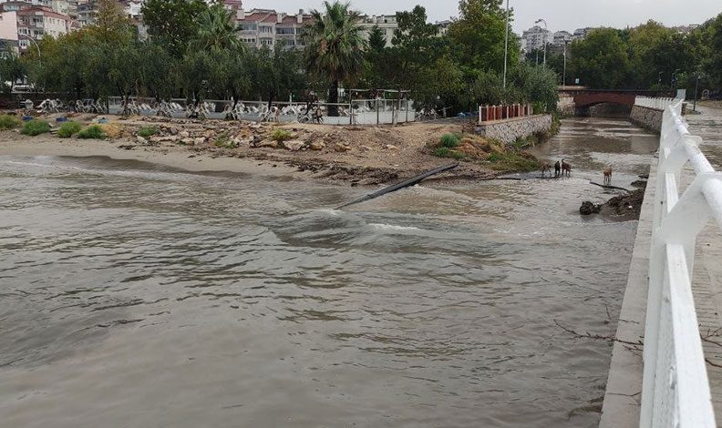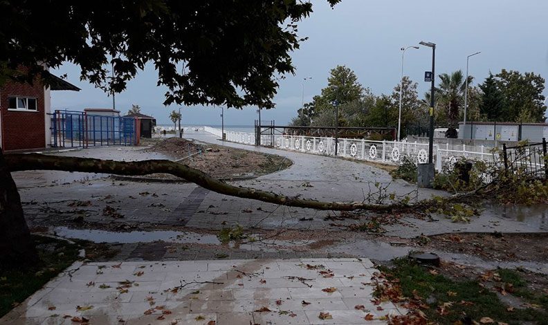 Denize karışan yağmur suları, denizin mavi görüntüsünü kahverengiye çevirdi. Yoğun yağışa daha fazla dayanamayan ağaçların gövdeleri ise kırıldı. Belediye ekipleri, ağaçları ve sel sularıyla birlikte gelen taşları kaldırmak için çalışmalarına devam ediyor.