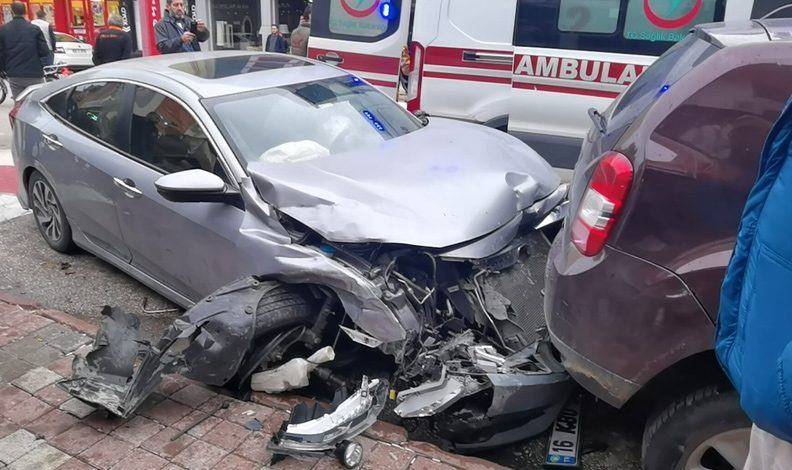 Hızlanan otomobil, karşı yönden gelen Furkan Elmas (21) yönetimindeki araca, ardından sırasıyla park halindeki 2 otomobile çarptı. Duramayan araç 50 metre ilerde park halindeki cipe ve bir iş yeri önünde satışa sunulan 2 adet motosiklete daha çarparak durabildi.