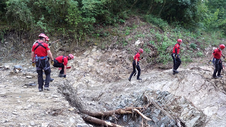 Sabahın ilk ışıklarından itibaren, sarp kayalıkların bulunduğu vadide arama yapan dalgıç polisler, özellikle suyun altında sopalarla arama yapıyordu.