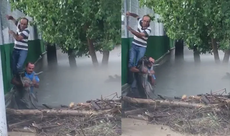 Bursa’nın dağ ilçesi Harmancık’ta dolu yağışı etkili oldu. Şiddetli rüzgarla birlikte yağan dolu ve yağmur sebebiyle, Çayır Mahallesi’nde bulunan dere taştı. Bazı ev ve iş yerlerinde su baskını yaşanırken, sel sularında mahsur kalan bir köpek ise BUSKİ ekipleri tarafından kurtarıldı. O anlar cep telefonu kamerasıyla kaydedildi.