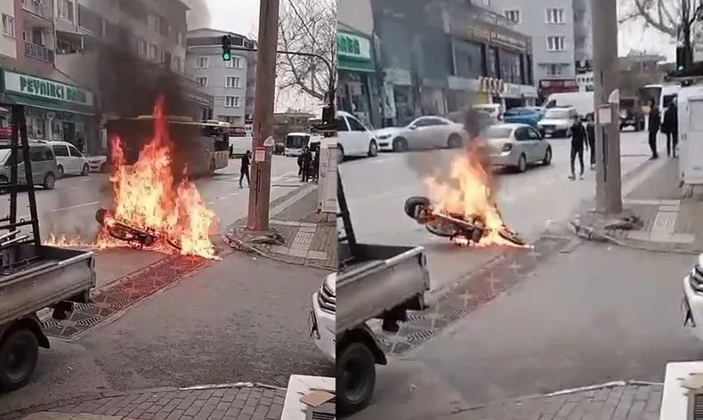 Motosiklet metal yığınına dönerken yangının çıkış sebebi araştırılıyor.
