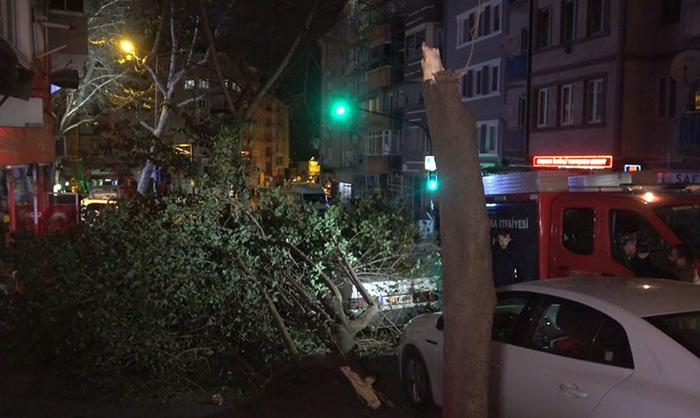 Olay, saat 04.00 sıralarında merkez Yıldırım ilçesi, Davutkadı Mahallesi’nde meydana geldi. İncirli caddesi üzerinde bulunan ağaç, şiddetli rüzgarın etkisiyle ortasından kırılarak park halinde bulunan 16 YV 960 plakalı bir otomobilin üzerine devrildi. Cadde üzerinde kimsenin bulunmaması ise muhtemel bir faciayı önlerken, devrilen ağacı gören vatandaşlar durumu 112 Acil Çağrı Merkez’ine bildirdi. İhbar üzerine bölgeye itfaiye ekibi sevk edildi.