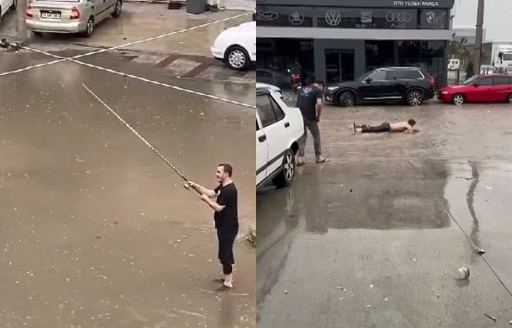 Bursa’nın İnegöl ilçesinde etkili olan sağanak hayatı felç etti. Sokak ve caddeler göle dönerken sosyal medya meraklıları ise sözde balık tutup kulaç attı. Can kaybı yaşanmazken sağanak ve fırtına vatandaşlara zor anlar yaşattı.
