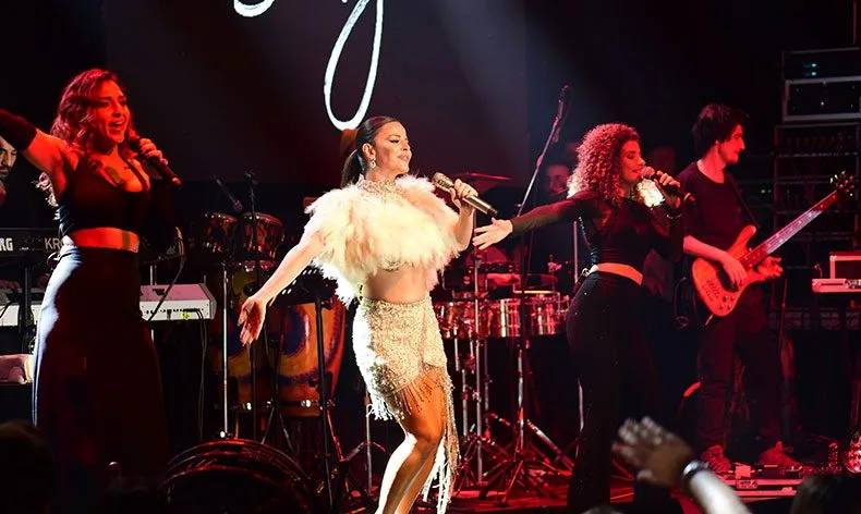 Sahne kıyafeti ve danslarıyla adeta göz dolduran Simge, sevilen şarkılarını Bursalı sevenleri için seslendirdi.