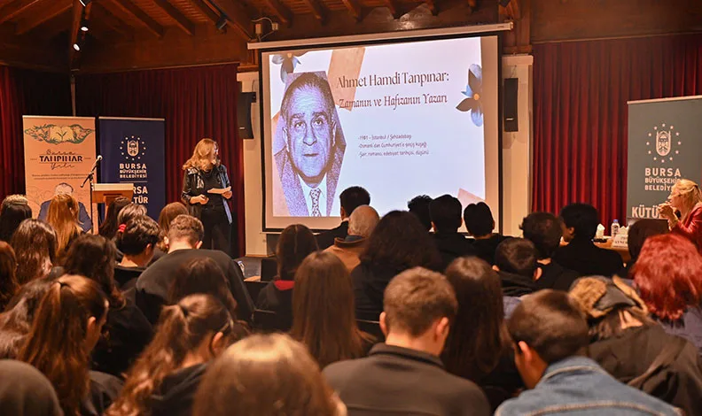 Bursa Büyükşehir Belediyesi Kültür ve Sosyal İşler Dairesi Başkanlığı Kütüphaneler Şube Müdürlüğü tarafından Şehir Kütüphanesi’nde ‘Tanpınar’ın İzinde: Mitlerin Modern Yankısı’ söyleşisi gerçekleştirildi.