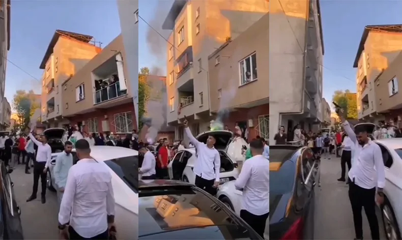 Merkez Yıldırım ilçesine bağlı Ulus Mahallesi’nde düğünleri olan kalabalık gurup gelin alma merasiminde eğlencenin dozunu kaçırdı. Meşaleler yakıp silah çeken kalabalık içindeki bir gurup maganda, yanlarında taşıdıkları silah ile sokak arasında arka arkaya tetiğe basıp havaya ateş açtı.