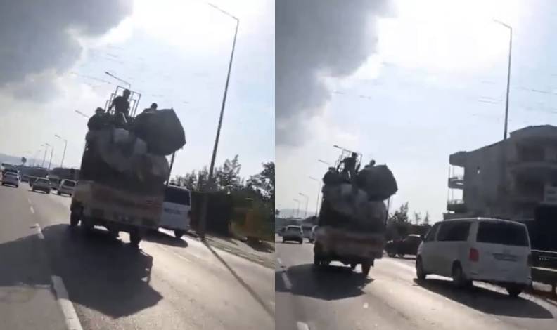 Sürücüsü kullandığı kamyonetin 2 katı büyüklüğünde taşıdığı yük ile trafikte tehlike saçarak ilerledi. Kamyonet, bir süre sonra trafikte gözden kayboldu.