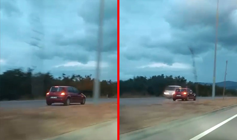 Şans eseri kazaya karışmayan sürücü yürekleri ağza getirirken, bir süre sonra bağlantı yoluna girip gözden kayboldu.