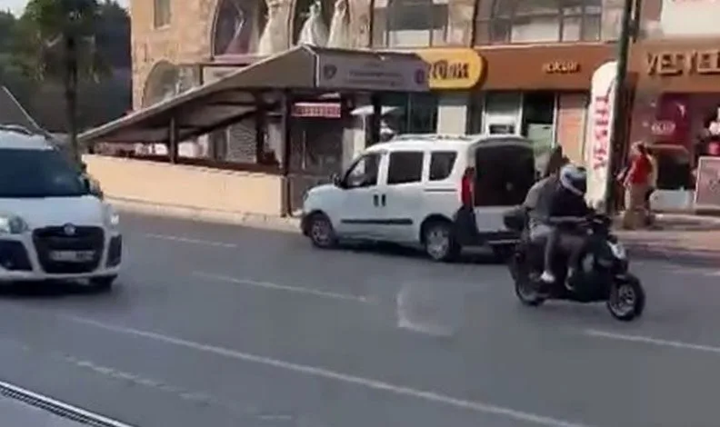Şehrin en işlek caddelerinden birinde hafif ticari araç ters şeritten giderek tehlikeye davetiye çıkardı. O anlar bir vatandaşın cep telefon kamerasına yansıdı.