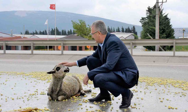O sırada bir etkinlikten dönen Karacabey Belediye Başkanı Ali Özkan, kazayı görünce makam aracını durdurdu. Özkan, ekibiyle yol güvenliğini alıp koyununun emniyetini sağladıktan sonra, polis ekiplerini olay yerine çağırdı.