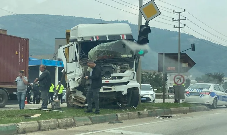 Bursa-Ankara karayolu Kestel ilçesi girişi Barakfaki mevkiinde meydana gelen kazada Bursa’dan İnegöl’e seyir halinde olan sürücünün kullandığı TIR, hatalı U dönüşü yapmaya çalışan kamyona çarptı.