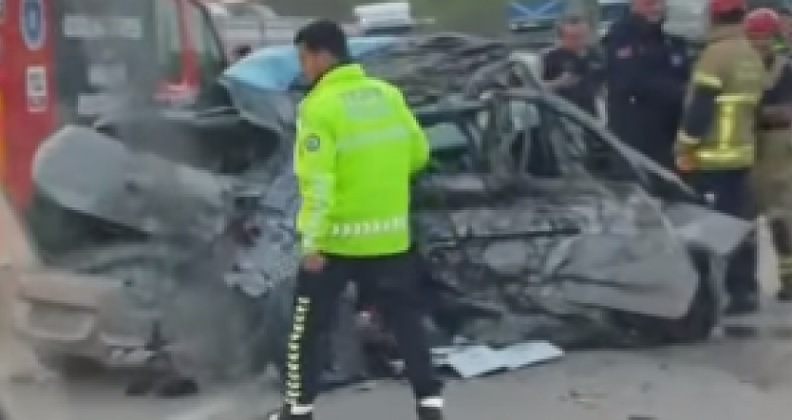 Edinilen bilgiye göre, tır ile otomobil çarpıştı. Kaza sonucu otomobil hurdaya döndü.