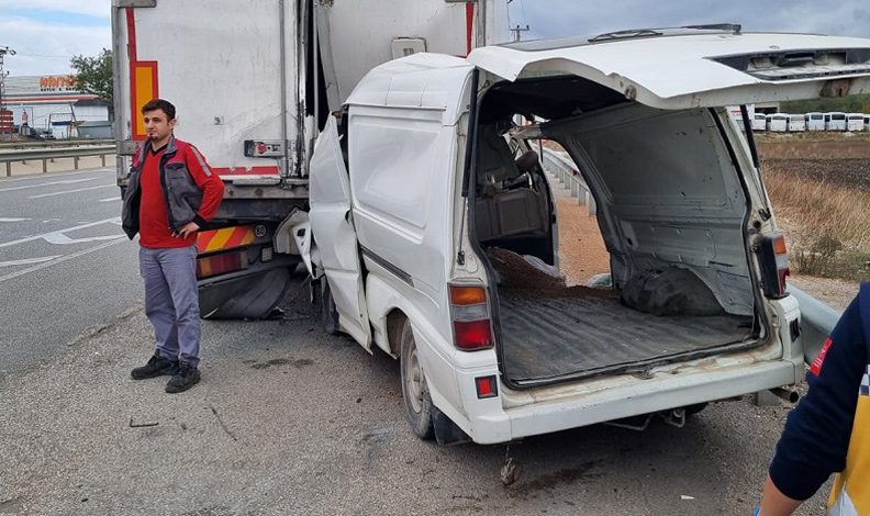 Bursa-İzmir yolunda seyreden ve Bursa istikametine seyreden Bahri Güner (58) idaresindeki panelvan sürücüsünün direksiyon hakimiyetini kaybetmesiyle yolun sağ tarafında park halinde olan TIR’ın dorsesine çarptı.