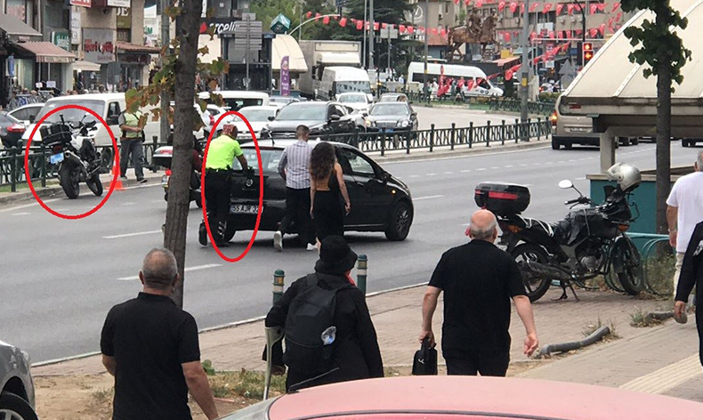 O anlar kamera ile kaydedilirken, trafik polisinin örnek davranışı takdir topladı.