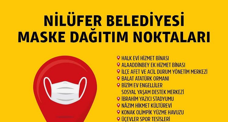 Nilüfer Belediyesi, vatandaşlara ücretsiz verilen maskelerin dağıtım noktalarını açıkladı. Açıklamada; ‘Hijyenik şartlarda ürettiğimiz maskelerimizi belirtilen dağıtım noktalarından 08:00-18:00 saatleri arasında alabilirsiniz.” ifadelerine yer verildi. Dağıtım noktaları şu şekilde;