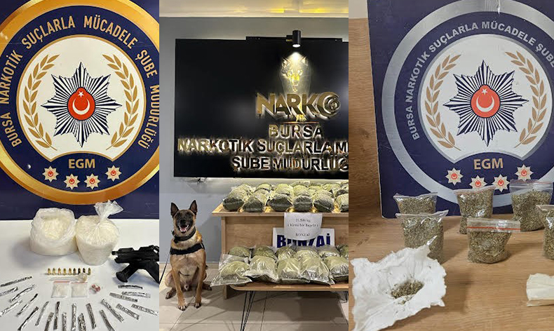 Bursa İl Emniyet Müdürlüğü Narkotik Suçlarla Mücadele Şube Müdürlüğü ekiplerince il merkezinde uyuşturucuya yönelik operasyon düzenlendi. Polis ekiplerince teknik takibe alınan 188 ayrı kişinin adresine baskın düzenlendi.