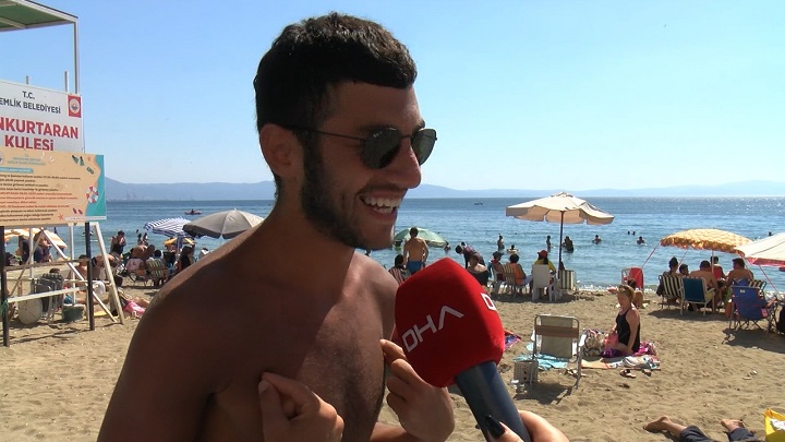 İstanbul’dan tatil için gelen Arda Yılmaz koronavirüsün olmadığını savundu. Yılmaz, “İstanbul’dan geldim. Sahilimiz çok güzel. Her gün burada yüzüyorum. Hiçbir sıkıntı yok, virüs yok. Virüs olsaydı, ilk önce bana bulaşırdı. İnsanlar tıklım tıklım burada ve kimsede maske yok. Zaten maskeyle de yüzülmez. Ben kimseye virüs bulaştığını da duymadım. Hiç kimsenin korkmasına gerek yok. Rahat rahat yüzebilirler. Sahilde sosyal mesafe yok. Geçen hafta daha da kalabalıktı. İnsanlar geldiği zaman yan yanalar, top falan oynuyorlar. Buna rağmen birine virüs bulaştığını duymadım. Aslında sağlıklı ortam değil. İnsanların arasında 1 metre mesafe olması lazım ama insanların yapacağı bir şey yok. Virüs de yok. İnsanlar gayet rahatladı. Kimsenin bir korkusu yok. Hiç tedirgin değilim. Babam kronik hasta. Zamanında korktuğumuz için tedbirlerimizi aldık. Ancak baktık ki virüs yok, denize giriyoruz hiçbir sıkıntı yok. Bu yüzden babam da ben de tedbirleri bıraktık. Maske yasağının da kaldırılmasını rica ediyorum” dedi.
