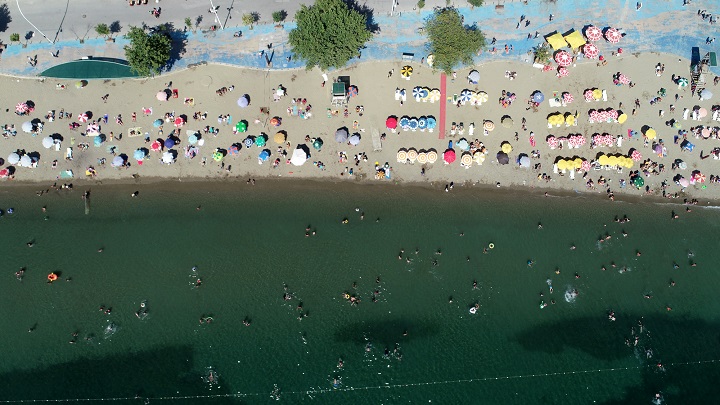 Sahildeki yoğunluk dronla havadan görüntülendi.