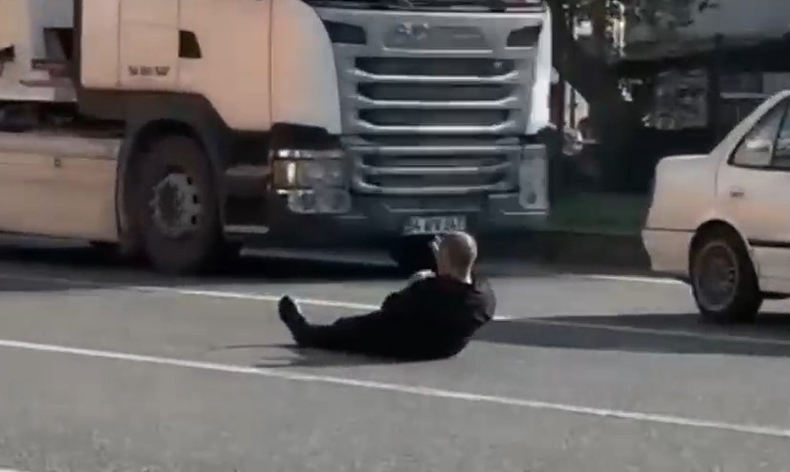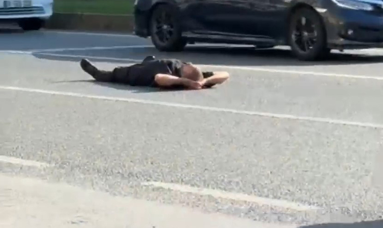 Bursa’nın Orhangazi ilçesindee trafikte yüzlerce aracın yoğun bir şekilde ilerlediği anlarda canını tehlikeye atarcasına yere yatan ve kimliği belirlenemeyen şahıs vatandaşların ve sürücülerin uyarılarını dikkate almayıp bir süre daha yolda uzandı. Bir süre yolun ortasında yatan vatandaşı ezmemek için sürücüler şerit değiştirirken, trafikte aksama meydana geldi.