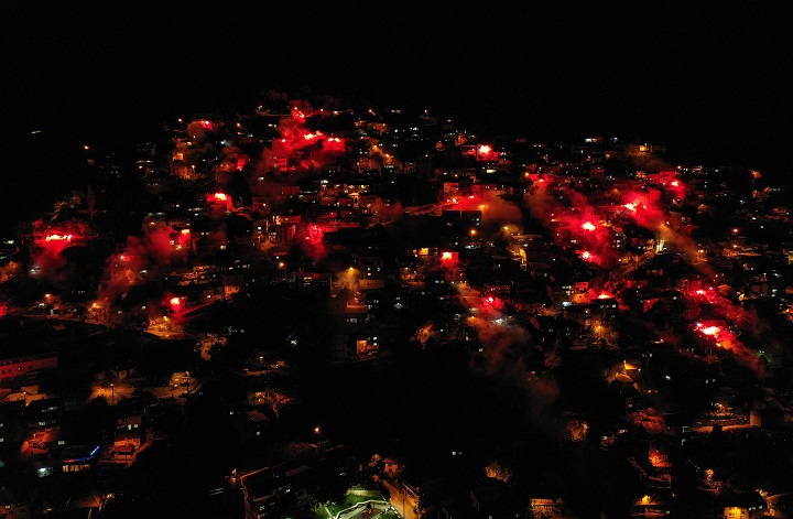 Saat 21.00’da okunan İstiklal Marşı’yla aynı anda yakılan 1000 meşale, görsel şölen oluşturdu.
