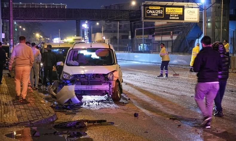 İddiaya göre, D.K. yönetimindeki 16 S 3255 plakalı servis minibüsü, aynı istikamette ilerleyen B.G.’nin kullandığı 06 HNJ 26 plakalı kamyonetle çarpıştı. Çarpışmanın etkisiyle 16 S 3255 plakalı servis, yol kenarında duran 16 BKJ 708 plakalı hafif ticari araca ve kaldırımda park halinde bulunan 16 S 3222 plakalı servise çarptı. Kamyonet ise metro alt geçidine savruldu.