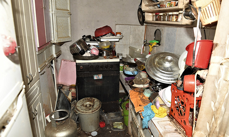 Evin odaları çöplüğe dönerken dayanılmaz bir koku yayılmaya başladı. Evden çıkan pis koku mahalleli tarafından duyulmaya ve mahalleyi sinekler basmaya başlayınca dilekçe toplanarak şikâyette bulunuldu.