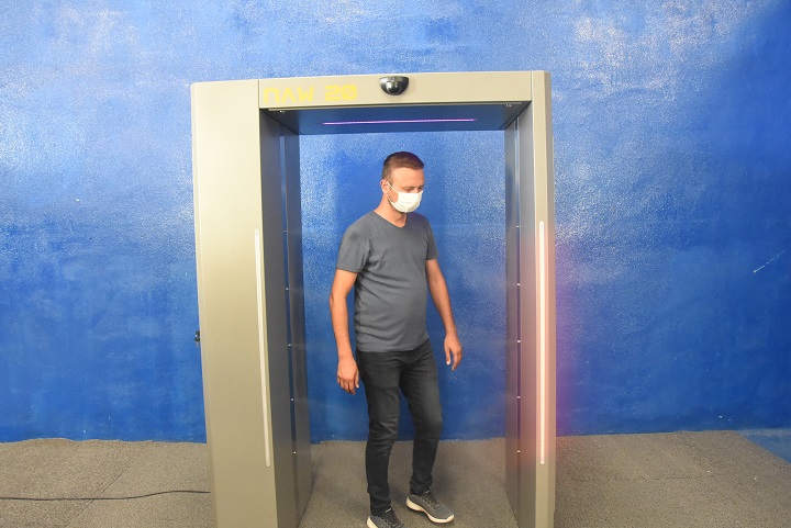 Dezenfeksiyon tünellerinin özelliklerinden bahseden Coşkun, “İnsan vücudunun tamamını dezenfekte etmektedir. İnsan sağlığına zararlı olmayan dezenfektan kullanıyoruz. Dezenfekten tünelinin yazılımı, tasarımı bütün her şeyi kendi üretimimiz. Tamamen yerlidir. 40 litrelik tank haznesi var” diye konuştu.