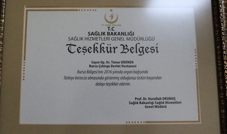 Çekirge Devlet Hastanesi Organ Nakil Koordinatörü Tamara Uzun Bal da, Dr. Timur Didinen ile 20 yıldır mesai arkadaşı olduklarını anlatarak, “Organ bağışından önce genel cerrahi de beraber çalışmaya başladık. Daha sonra yoğun bakım sürecinde yollarımız kesişti. Timur beyin bu işe girmesi tamamen gönüllüydü. Organ için bir aile görüşme yaparken, görüşmeye geldi ve bu işi yapacağını söyledi. Çok severek çalıştı, acılı ailelerle görüştükleri zaman bile kendisine teşekkür ederek ayrıldılar. Organ bağışlamanın huzuru ile yanımızdan ayrıldılar. Timur Bey, çok sevilen, danışılan, insanların akıl hocasıydı, herkesin Timur Ağabeyiydi” ifadelerini kullandı.