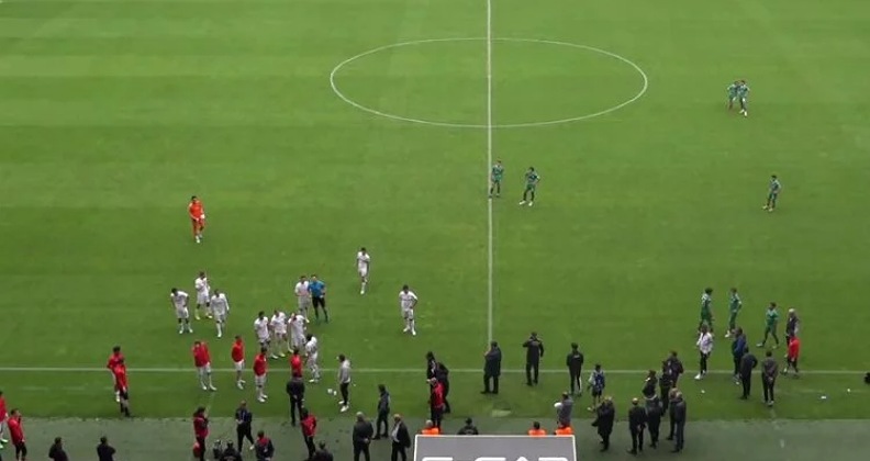 Maçın başlama düdüğü ile birlikte 1 sahada hareketsiz kalan ACN Vanspor FK, maçın 20. dakikası oynanırken sahadan çekildi.