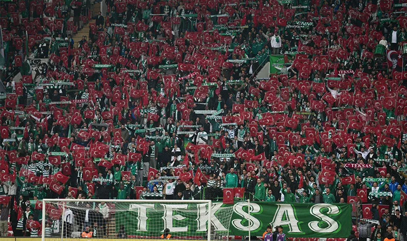 Dağıtılan bayraklarla stadyum adeta kırmızı-beyaza bürünürken, Bursasporlu taraftarların elinde yükselen 40 bin Türk bayrağı tribünlerde görsel bir şölen oluşturdu. Vatandaşlar, milli değerlere sahip çıkmanın gururunu hep birlikte yaşadı.