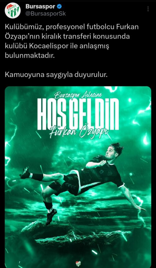 Bursaspor’dan Furkan Özyapı açıklaması