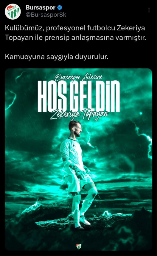 Yeşil beyazlı kulüp, geçen sezon Turgutluspor’da 28 maçta kaleyi koruyan 35 yaşındaki eski file bekçisini kadrosuna kattı.