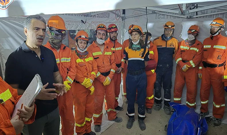 Ekipler, Gemlik Cumhuriyet Mahallesi’nde, kentsel dönüşüm nedeniyle yeniden inşa edilmek üzere yıkılan 15 bloklu bir sitenin enkazında toplandı. Depremin meydana geldiği saat 03.02’de sirenler çalındıktan sonra tatbikat yerine tam teçhizatlı olarak gelen arama kurtarma ekipleri, enkaz alanında sembolik arama kurtarma çalışması gerçekleştirdi.