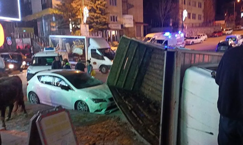 Alınan bilgiye göre, Akyurt ilçesi Dr. Neslihan Özenli Caddesi Çarşı Meydanı’nda büyükbaş hayvan yüklü kamyon kontrolden çıkarak devrildi. Kamyonun kazasında bulunan hayvanlar caddeye savrulurken, yaralanan sürücü ambulansla Akyurt Devlet Hastanesine götürüldü. Kaza anı güvenlik kamerasına da yansıdı.
