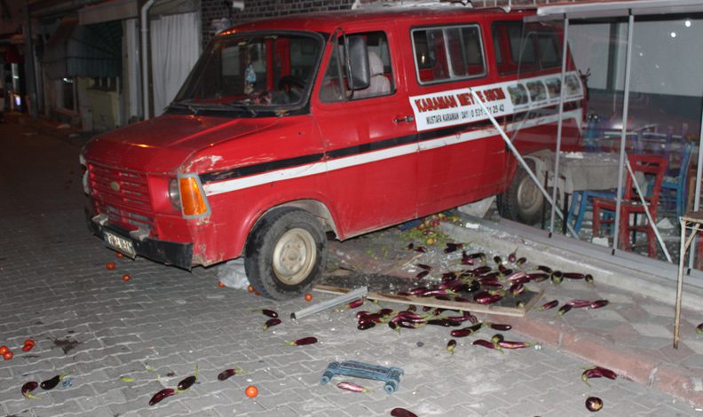 Bir süre sonra aracıya buradan çıkmak isteyen sürücü vitesleri karıştırınca minibüs kontrolden çıkıp çay ocağına girdi. Çay ocağındaki kapı çerçeveleri, masa ve sandalyeler kırılırken araç kapının kirişine takılarak durabildi. Sürücü ise, işletme sahibi Ufuk Cantürk tarafından araçtan çıkarıldı.