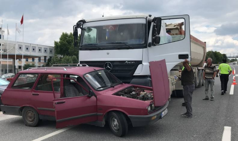 Bilecik’ten Osmaneli istikametine seyir halindeki Hasan Dinçer E. yönetimindeki kamyon, Bilecik Şeyh Edebali Üniversitesi önünde sol şeritten sağ şeride geçmek istediği esnada yine aynı istikamette seyir halindeki Murat K. (25) idaresindeki otomobile çarptı. Çarpmanın etkisiyle kamyon önünde 5 metre sürüklenen araç sürücüsü ve içinde yolcu olarak bulunan Hanife K. (48) yaralandı.
