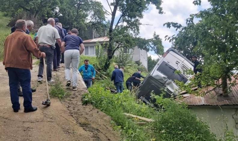 Ahmet K. yönetimindeki minibüs, seyir halinde iken ilçenin Simenli mahallesinde freninin boşalması ile sürücüsünün direksiyon hâkimiyetini kaybetmesi sonucu kontrolden çıkarak evin çatısına düştü.