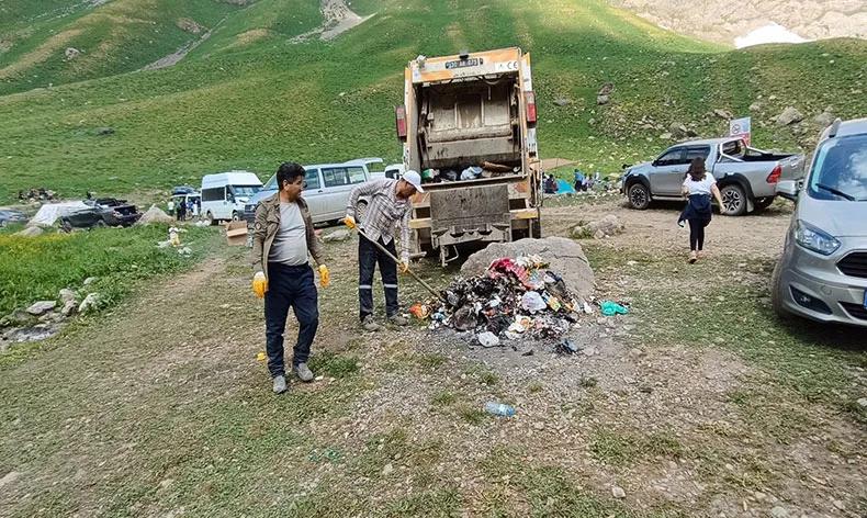 Türkiye’nin en yüksek ikinci zirvesi olan Uludurok’un yer aldığı Cilo-Sat Dağları eteklerinde bulunan Cennet ve Cehennem Vadisi’nde piknik yapan vatandaşlar tarafından çevreye atılan çöpler, il özel idaresi ekipleri tarafından bölgeden alındı.