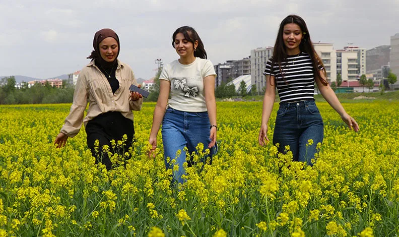 Kır çiçeği bahçesinde arkadaşlarıyla vakit geçiren Güldeniz Yağız ise şunları söyledi. “Kızlarla birlikte dolaşırken kır çiçeklerin çok güzel göründüğünü farkettik. Fotoğraf çekinmeye geldik. Kızlarla birlikte çiçeklerin arasında vakit geçirmek çok güzeldi” şeklinde konuştu.